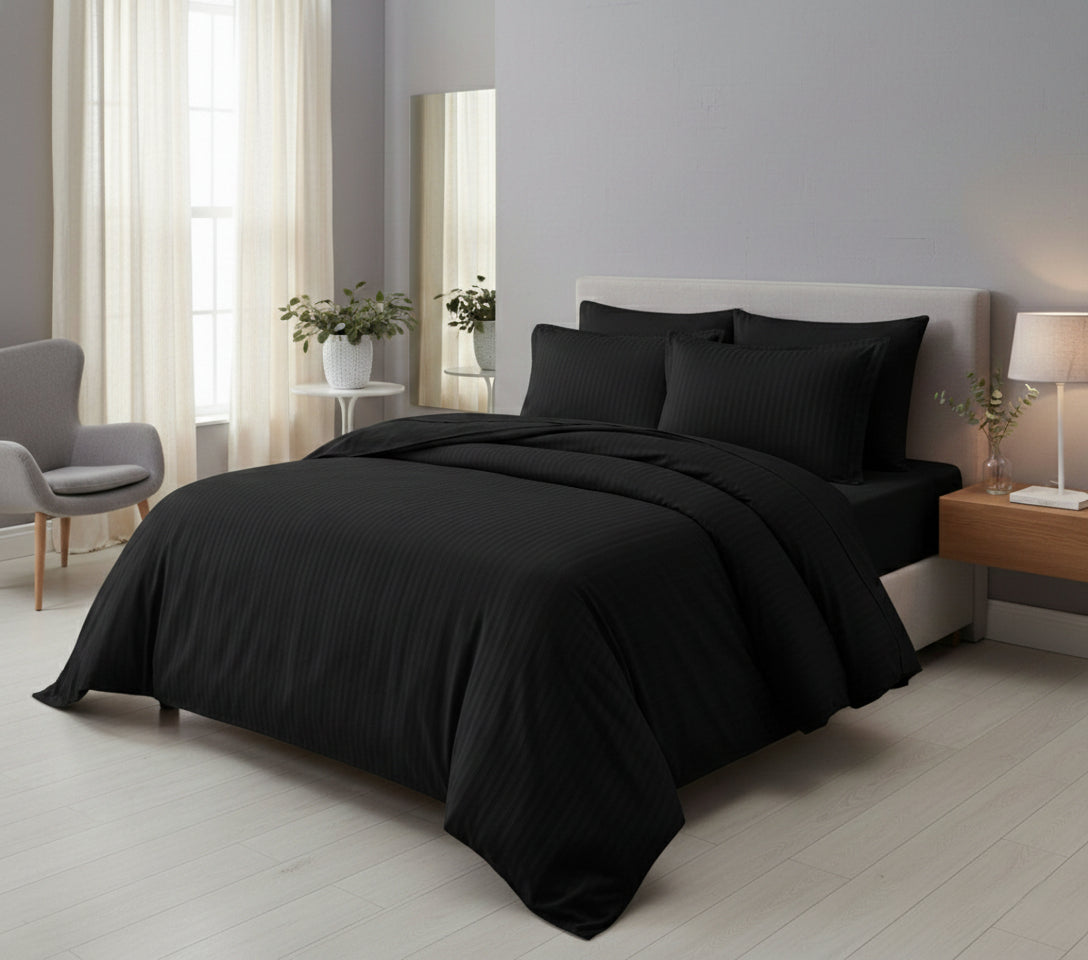 Notre parure en satin de coton 120 fils/cm² (équivalent 300 TC, standard international) offre une expérience de confort raffinée, alliant fluidité, douceur et subtil éclat.